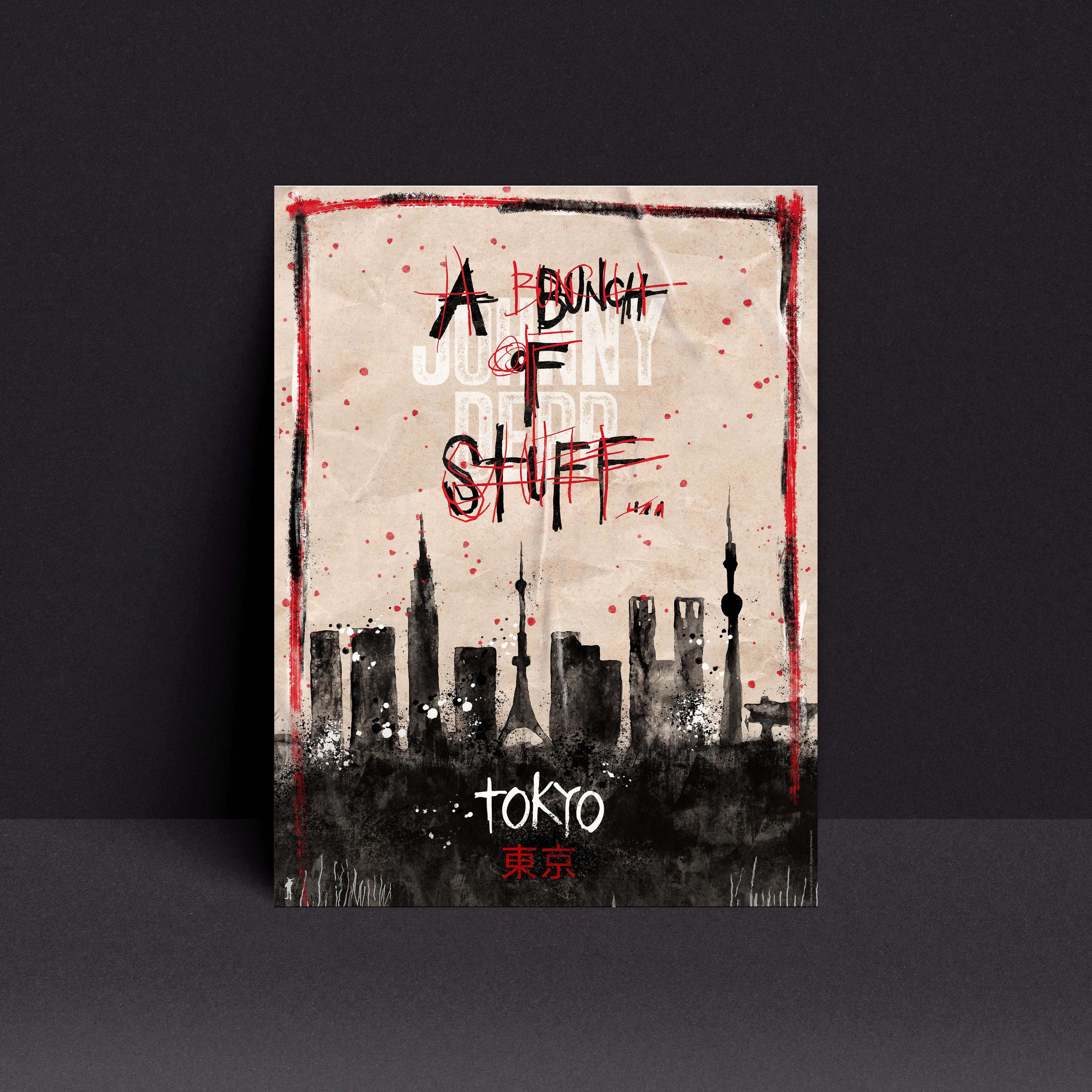 このポスターは、2024年の展覧会デビューの瞬間を鮮やかで息をのむような輝きとして捉えています。展覧会のニューヨーク開催を表す都市の街並み、重ねられたテクスチャーと描かれた筆跡は、ジョニーの触覚的な芸術技法のレパートリーを強く思い起こさせます。