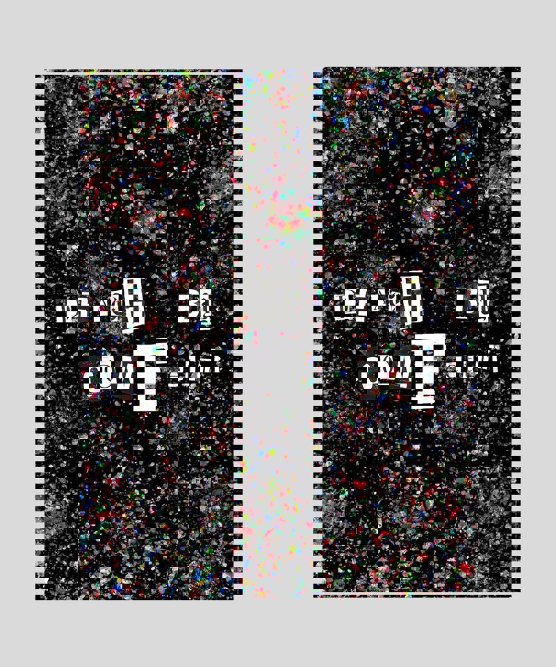 「デス・バイ・コンフェティ」ポスターは、同名の骸骨が散りばめられた絵画シリーズからインスピレーションを受けています。ハリウッドとパパラッチの圧倒的(そしてしばしば魂を消耗させる)雰囲気への批評として、ジョニーのサイケデリックな紙吹雪は、無数のパパラッチから浴びせられる大量のフラッシュ、あるいはハリウッドドリームの甘く飾られた人工的な約束と解釈できます。いずれも必然的に骸骨の内面と外面の崩壊へと導きます。ゴシック調の文字と真っ黒でぽっかりと広い空間を通じて、絵画のブラックコメディ的な性質が暗示されています。