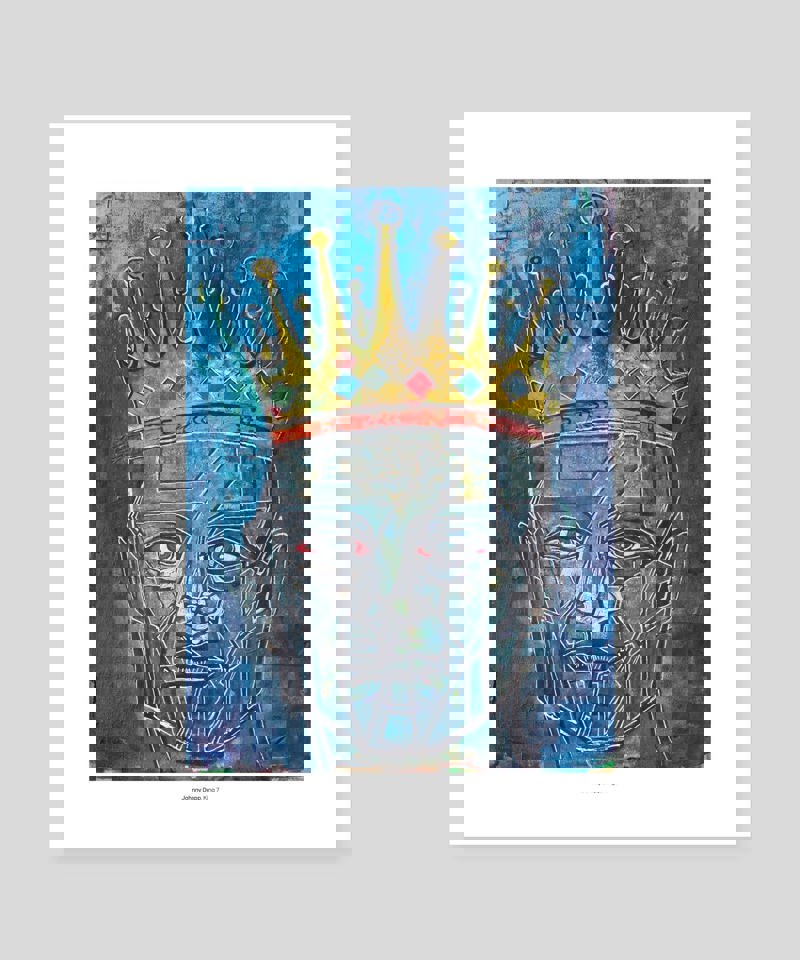 オリジナルアート『King 7』のミニプリント。ジョニーがバスキアの作品に敬意を表して制作した作品。